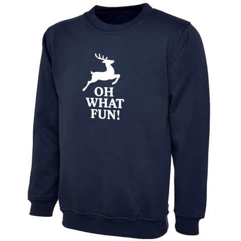 Kids Unisex “OH WHAT FUN!” Christmas Sweatshirt – Festive Novelty Jumper