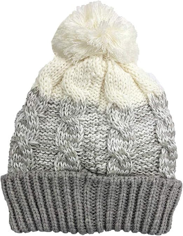 Womens Waterproof Sherpa Lined Cable Thermal Knitted Bobble Beanie Hat - LA316