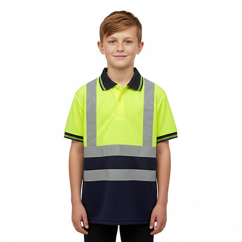 Standsafe Kids Hi-Vis Polo Top – a lightweight, breathable two-tone hi-vis polo designed for comfort and visibility.